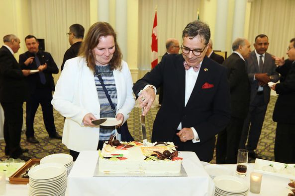 La célébration du 68ème anniversaire du déclenchement de la Révolution a été l’occasion cette année pour l’organisation d’une réception qui a compté avec la présence de nombreuses personnalités canadiennes dont L’honorable Ahmed Hussen, Ministre du Logement, de la Diversité et de l’Inclusion, ainsi que Madame Cynthia (Cindy) Termorshuizen, Sous-ministre déléguée des Affaires étrangères.