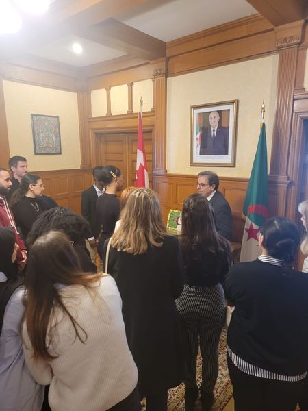Dans le cadre de leur cursus universitaire, un groupe d'étudiants de l'université d'Ottawa a effectué une visite à l'ambassade pour rencontrer l’Ambassadeur, Dr. Noureddine Bardad-Daïdj, pour un échange instructif et fructueux en matière de diplomatie, de politique et de relations internationales.