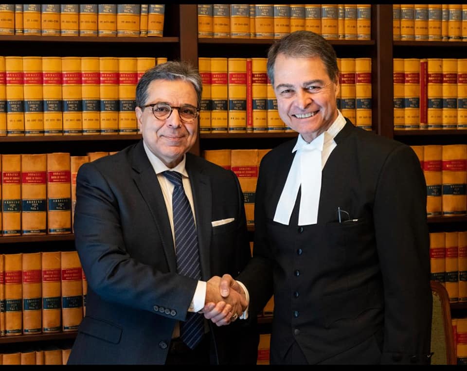 Faisant suite aux décisions du Conseil des Ministres des Affaires étrangères de la Ligue Arabe, en date du 11 mai 2021, M. l'Ambassadeur a pris part avec le Groupe des Ambassadeurs arabes à deux réunions, les 31 mai et 02 juin, respectivement, avec M. Rob Oliphent, Député et Secrétaire parlementaire de M. le Ministre des Affaires étrangères ainsi que M. Antony Rota, Président de la Chambre des Communes du Canada. Les entretiens ont porté sur la situation en Palestine.