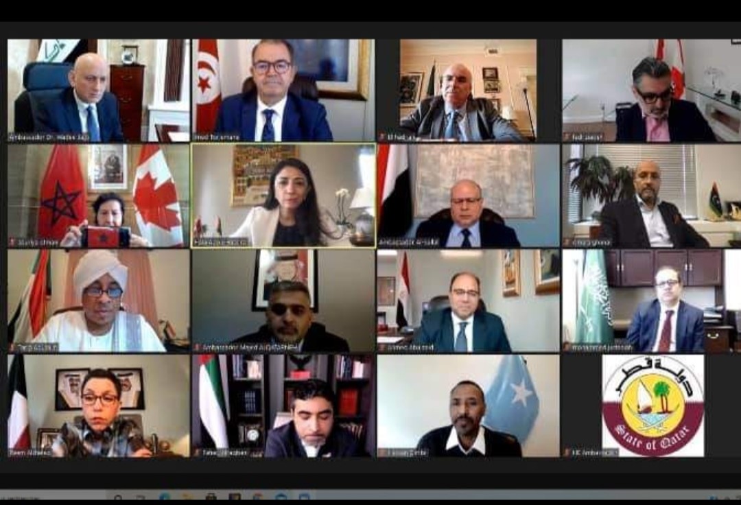 M. l'Ambassadeur a participé, le 11 Mai 2021, à la réunion extraordinaire du Groupe des Ambassadeurs Arabes à Ottawa, consacrée à l'examen des derniers développements en Palestine et des démarches susceptibles d'être effectuées par le Groupe auprès des Autorités canadiennes.
