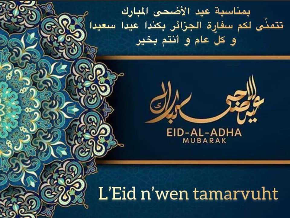 accompagnées de mes meilleurs vœux à l’ensemble de la communauté algérienne établie au Canada, priant Dieu le Tout-Puissant