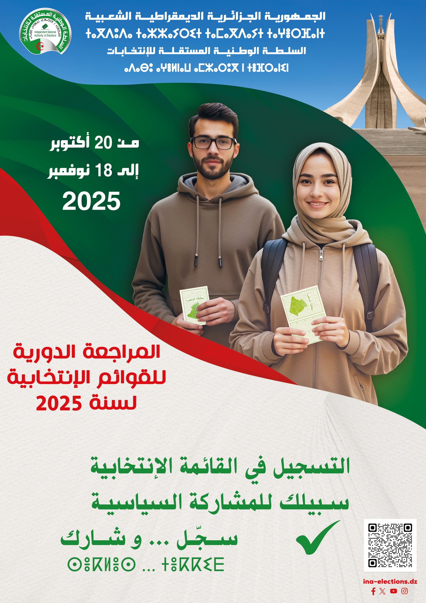 En application du décret présidentiel N˚ 01-96 du 11 mars 2021, portant convocation du corps électoral pour l’élection des membres de l’Assemblée Populaire Nationale, prévue le samedi 12 juin 2021, il sera procédé à la révision exceptionnelle des listes électorales, du 16 au 23 mars 2021...