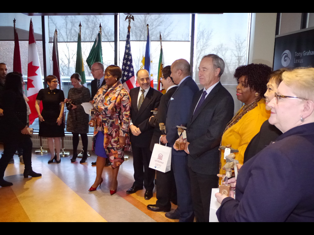 C'est au cours d'une cérémonie officielle au ''Shaw Center'' que le grade honorifique lui a été conféré en reconnaissance de ses importantes contributions à la paix et à la sécurité internationales.